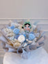 preserved blue themed flower bouquet with a cute crybaby (blindbox from pop Mart )